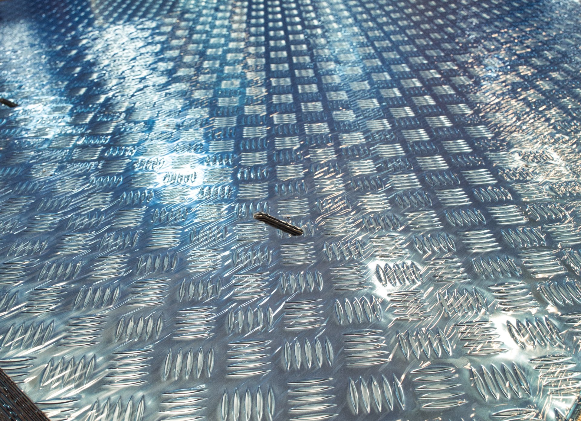 ขนาดมาตรฐานของแผ่นลายกันลื่นหรือแผ่นปั๊มนูน คือขนาด 4 x 8 ฟุต