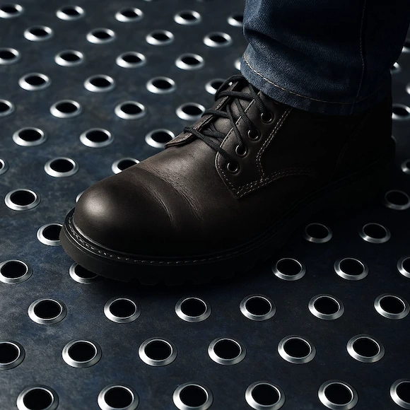ด้วยลักษณะขอบรูที่นูนขึ้นนี้ ทำให้ตะแกรงเจาะรูนูนทะลุมีคุณสมบัติกันลื่นที่ดีเยี่ยม เหมาะสำหรับพื้นที่ที่ต้องการความปลอดภัยสูง โดยเฉพาะบริเวณที่เปียกชื้นหรือมีความเสี่ยงต่อการลื่นล้ม