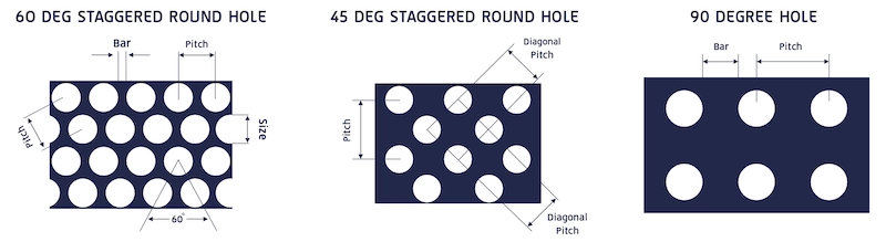 คือ ระยะห่างของเนื้อโลหะระหว่างรูสองรู ซึ่งใช้ในตะแกรงเจาะรู (Perforated Metal)